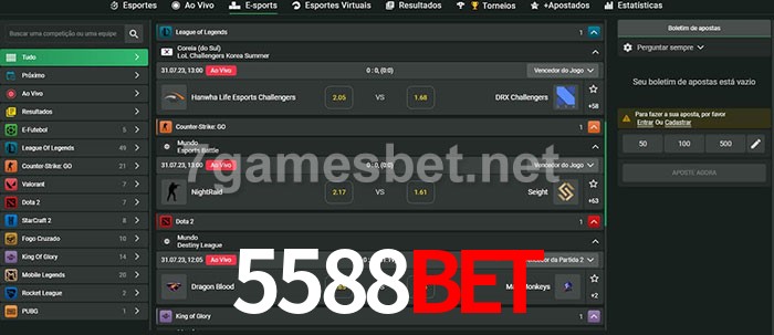 O 5588BET oferece uma grande seleção de opções de apostas em e-sports com probabilidades competitivas